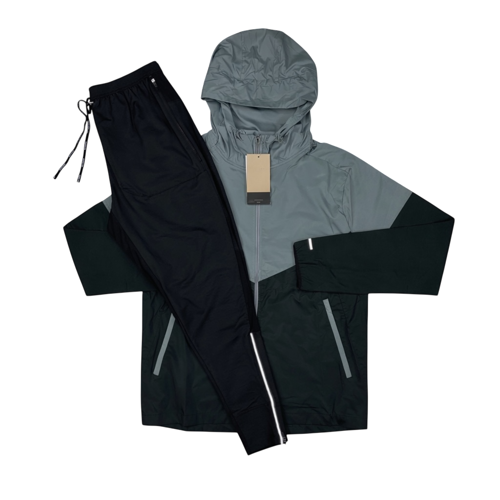 Two-Tone Performance Sports Set – Hooded Jacket & Jogger Pants (Gray & Black)